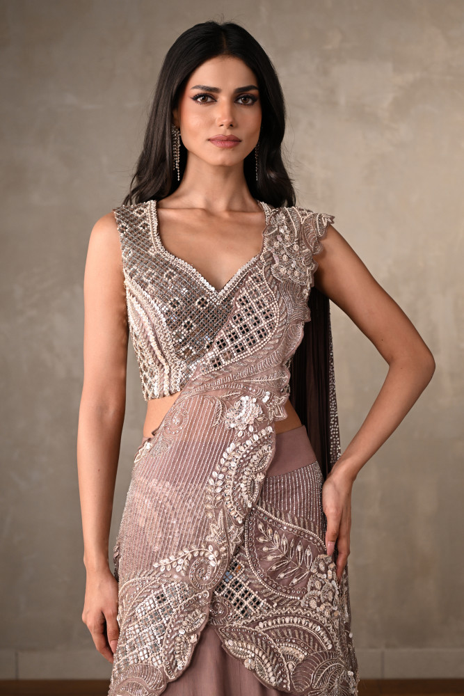 Shine bright in that perfect outfit of your dream with a multitude of trending designer lehenga choli online available at Onaya. Whether you love cape sleeves, cold shoulders, full sleeves, or cut-sleeve designs, you can find the heart-winning variety at our store.